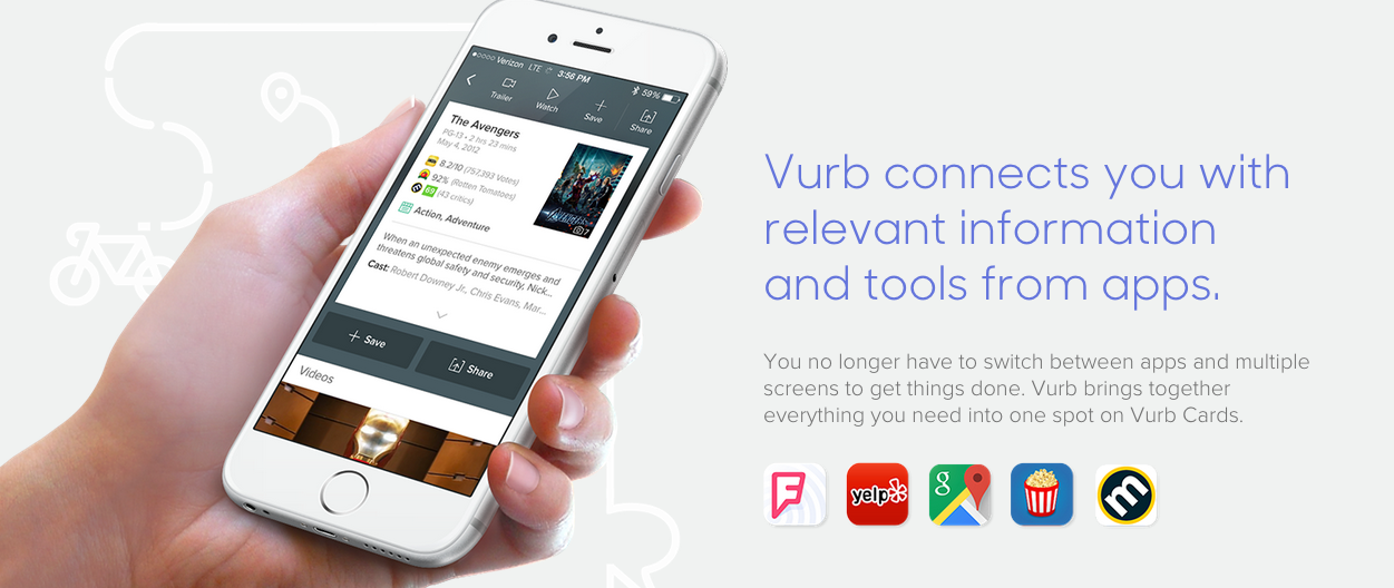 Vurb es una aplicación móvil para iPhone, y próximamente para Android, que permite la gestión de información de Foursquare, Yelp, Google Maps, Mapas… es decir, permite hacer búsquedas móviles geolocalizadas de manera sencilla para hacer planes, buscar un restaurante o encontrar un hotel. Todo en un solo lugar y con la posibilidad de publicar en los diversos espacios las opiniones o reviews.