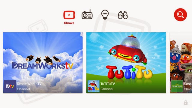 La interfaz es muy sencilla y permite buscar entre cuatro categorías: shows, music, learning y explore. Como indica la reseña de Rosa Jiménez Cano (@Petezin) en El País «basta con pulsar el icono que simula una televisión para que empiece a funcionar. Si se pulsa en el de radio, aparecerán vídeos musicales. La bombilla apunta a contenidos educativos. Unos prismáticos abren la puerta a los contenidos más vistos por otros niños, muy propio de Google».