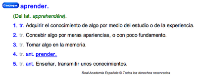 Según la definición de la RAE implica adquirir algo… es decir, tiene que ver con algo no poseído (que no externo). No podemos aprender algo que ya poseemos, sino que, bien por nosotros o a través de otros, añadimos algo.