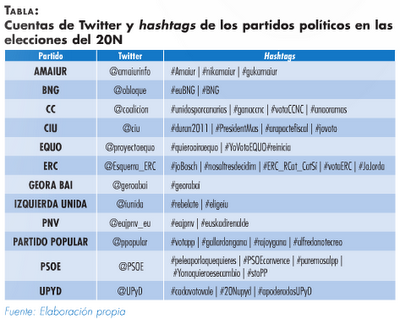 El seguimiento de los resultados no fue menos y el seguimiento ‘tuitero’ se realizaba desde #20N, #nocheelectoral, #elecciones20N, #elecciones2011, #tuits20N #resultados20n o en los hashtags de los partidos políticos, por supuesto, más de uno por partido.