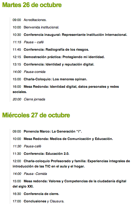 Tras el gran evento realizado el año pasado, este congreso figura ya como un referente para conocer las experiencias educativas que se realizan alrededor de la tecnología. Para dar continuidad con el encuentro de 2009 se configura como un espacio de «compartición» entre profesorado, familia y menores con temáticas como la privacidad, la intimidad, la identidad digital, los medios de comunicación…