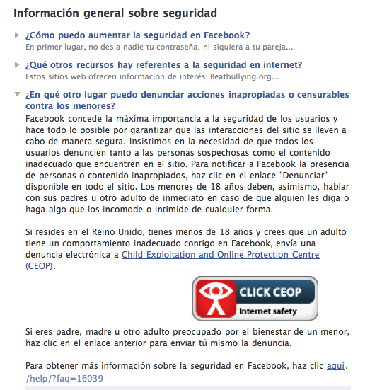 La funcionalidad básica será que los menores adolescentes puedan ponerse en contacto de una manera sencilla con los responsables de Facebook y con las autoridades ante una situación de abuso. Hasta aquí una gran idea que ya otras redes sociales llevaron a cabo (como Bebo o MySpace según la noticia de Elmundo.es) pero… ¿realmente el modo elegido por Facebook para utilizar este «botón» es el ideal?